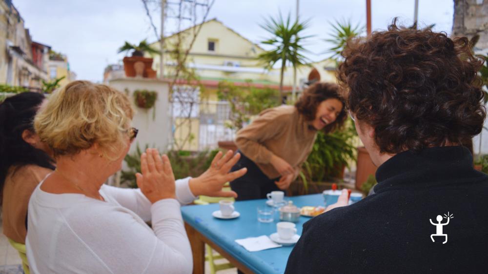 La passeggiata prosegue fino a un bar del quartiere all’interno della Fondazione FOQUS, simbolo di rigenerazione urbana e culturale. Qui si svolge un workshop interattivo sui gesti della tradizione napoletana, ispirato al libro “Gesti” di Bruno Munari, della durata di circa un’ora, accompagnato da un caffè.