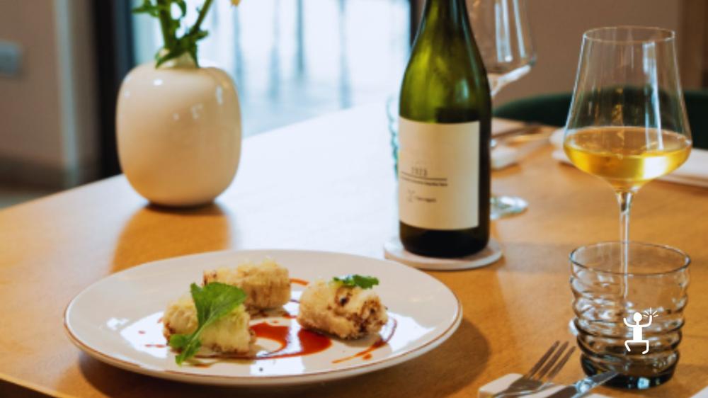 A seguire, il percorso prosegue nel ristorante interno, dove ti attende un menù degustazione di quattro portate, preparate con cura e ingredienti selezionati, ciascuna accompagnata da un vino biodinamico in abbinamento.