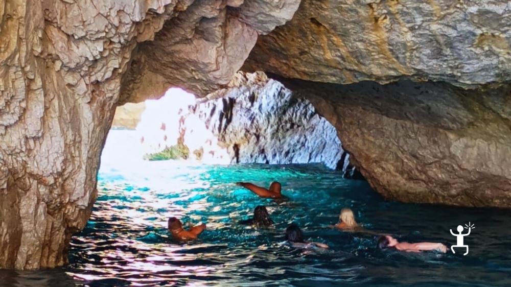 L’itinerario termina alla Grotta Verde, nota per le sue tonalità smeraldo.