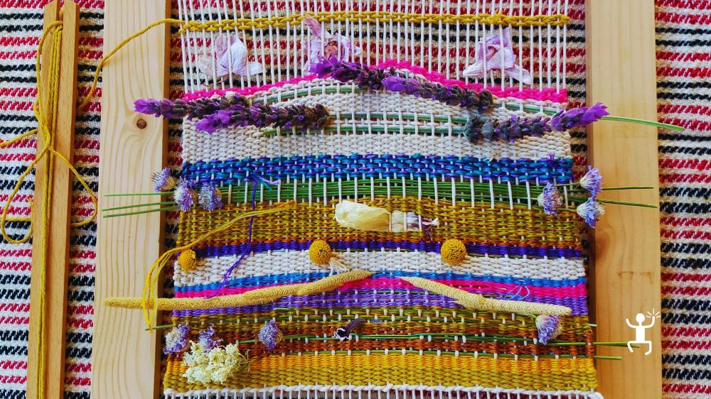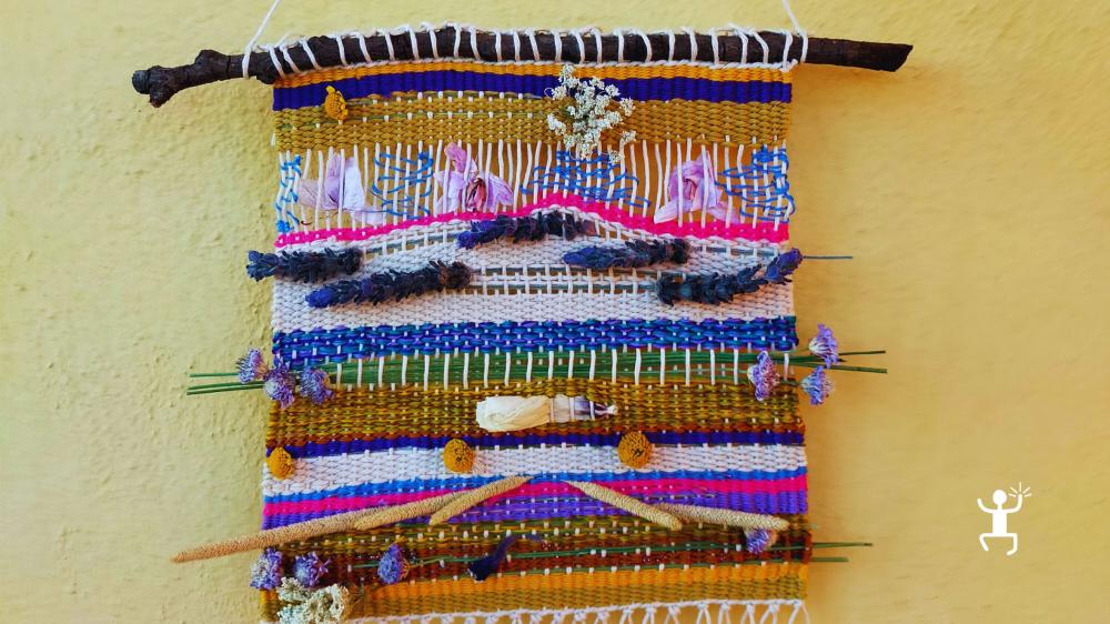 A seguire, prenderai parte a un laboratorio di tessitura su telaio a cornice, guidato passo dopo passo dalla maestra tessitrice. Realizzerai un piccolo arazzo decorativo, un vero quadro tessile fatto a mano con fibre naturali e fiori essiccati.